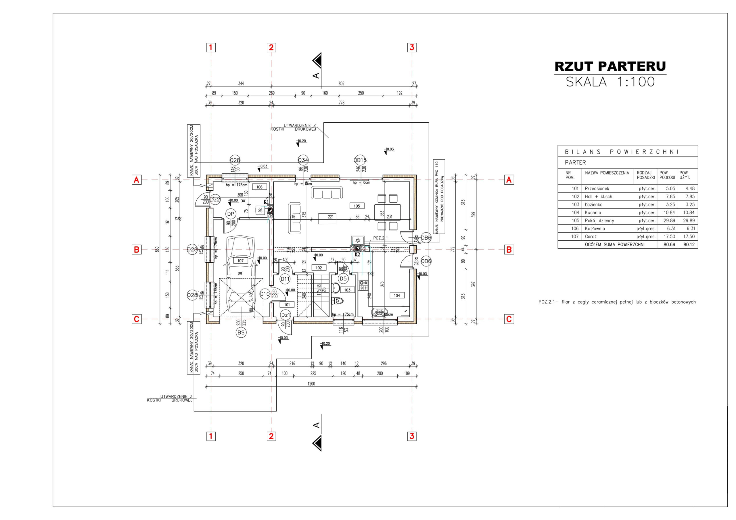 Salon z kominkiem i dużą kuchnią wzbogacono o możliwość wydzielenia dodatkowego pokoju. Mamy tu również małą podręczną łazienkę, hol oraz garaż z kotłownią, do której możemy wejść również z zewnątrz.